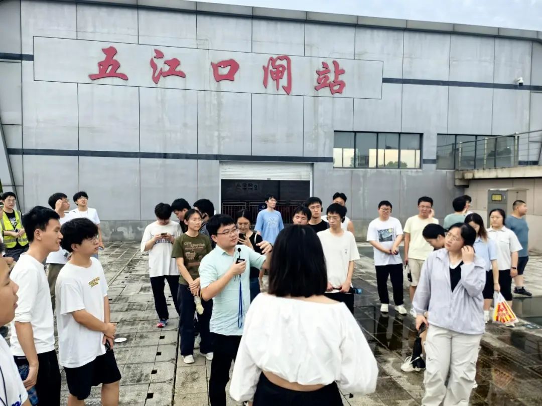 在姚江大閘和五江口排澇閘站,我院工程院總工程師張預(yù)定、弘泰公司智能控制部總監(jiān)葛永江分別為實(shí)踐團(tuán)進(jìn)行了詳細(xì)講解。同學(xué)們通過近距離觀察,深入了解不同類型水利工程在流域防洪排澇中的作用,掌握水利工程從規(guī)劃方案到設(shè)計(jì)施工,從智慧管理到運(yùn)行調(diào)度的技術(shù)脈絡(luò)。