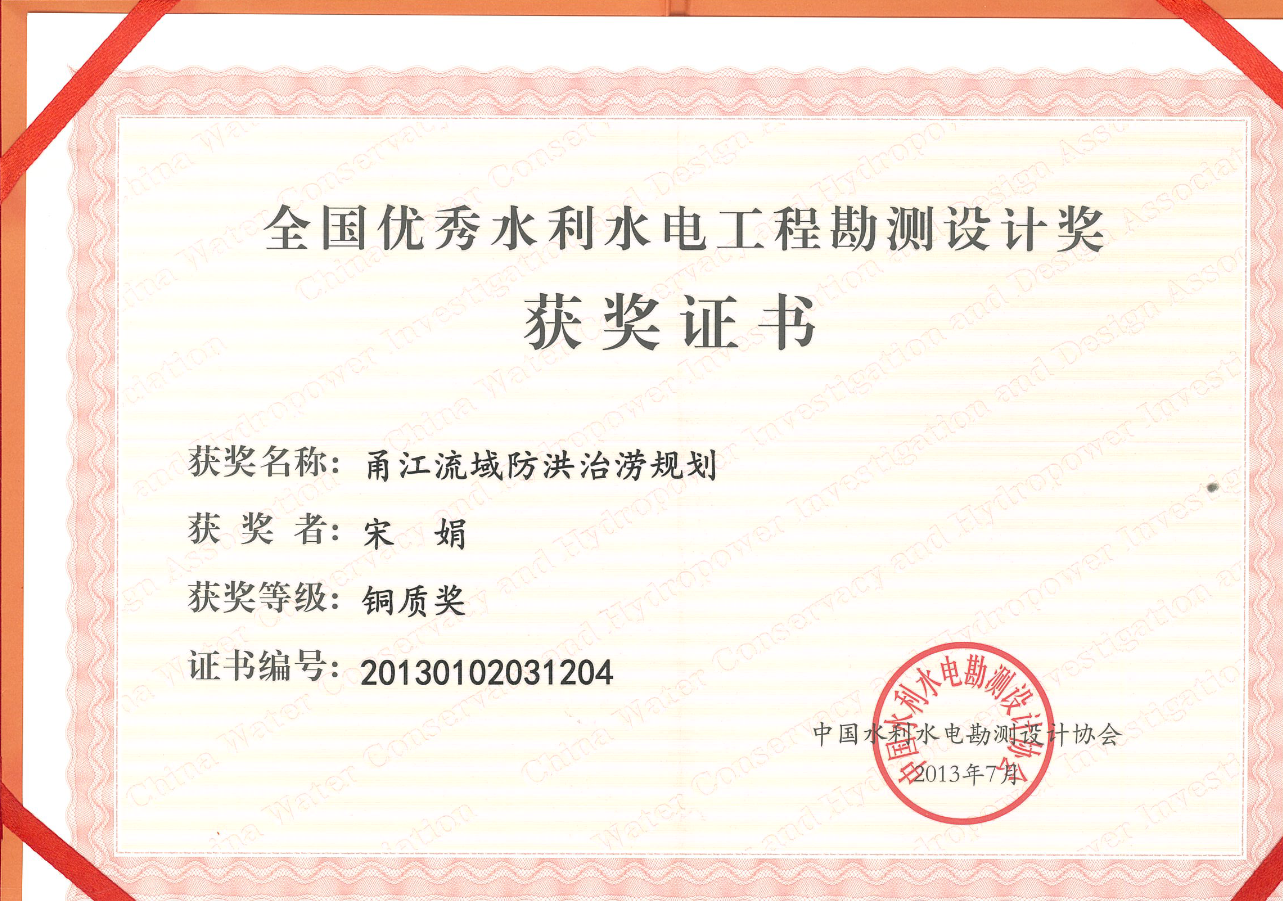 第一屆“中水萬源”全國水土保持與生態(tài)景觀設(shè)計(jì)大賽優(yōu)秀獎(jiǎng)