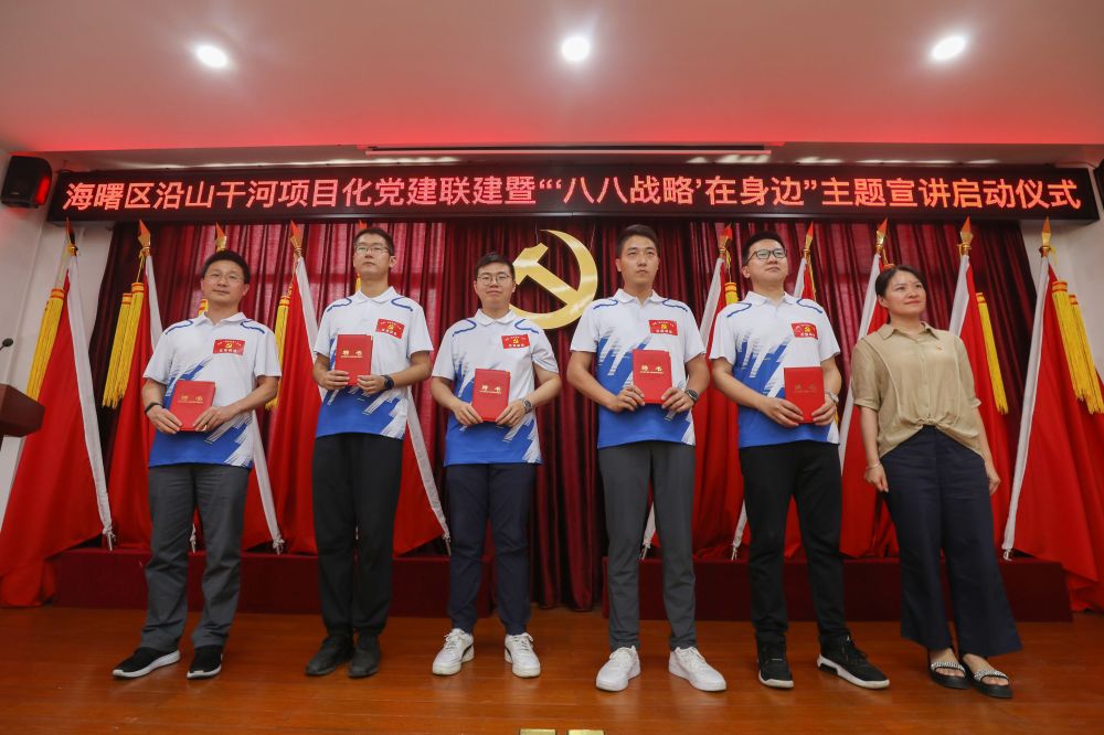 近日,海曙區(qū)直機(jī)關(guān)工委和區(qū)水利局以“五最黨建”為引領(lǐng),在集士港鎮(zhèn)岳童村文化禮堂舉行沿山干河項(xiàng)目化黨建聯(lián)建暨“‘八八戰(zhàn)略’在身邊”主題宣講啟動儀式,我院作為沿山干河項(xiàng)目參建單位、活動的承辦方參與了啟動儀式。我院黨總支書記、副院長王洪霞,工程設(shè)計(jì)項(xiàng)目組及青年黨員代表十余人參加了上述活動。