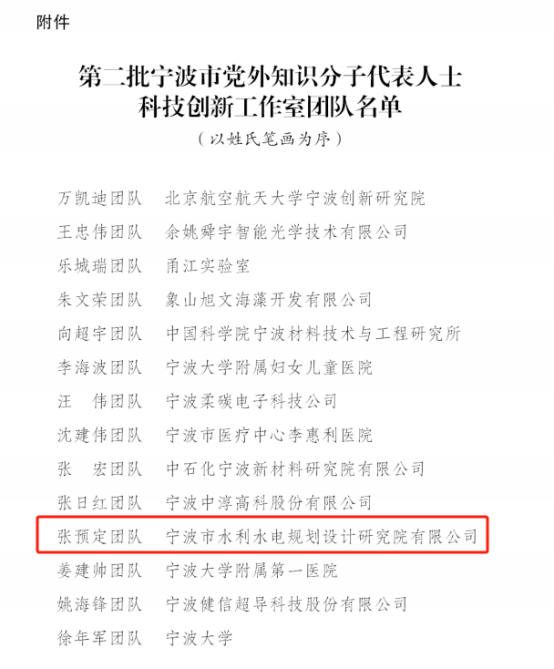 張預(yù)定創(chuàng)新工作室榮獲“寧波市黨外知識分子科技創(chuàng)新工作室”授牌,是對我院在水利領(lǐng)域深耕創(chuàng)績的肯定和認(rèn)可,也對我院將來的工作推進(jìn)提出了更高的標(biāo)準(zhǔn)和要求。為此,我院將以此為契機(jī),積極發(fā)揮榜樣團(tuán)隊(duì)的示范引領(lǐng)作用,進(jìn)一步激勵和支持廣大員工立足崗位、投身科技創(chuàng)新,以實(shí)干思維緊扣謀事成事的主旋律,以鉆研精神夯實(shí)攻堅(jiān)克難的基本功,力求在新質(zhì)生產(chǎn)力培育發(fā)展上再創(chuàng)佳績,為寧波水利高質(zhì)量發(fā)展作出新貢獻(xiàn)。