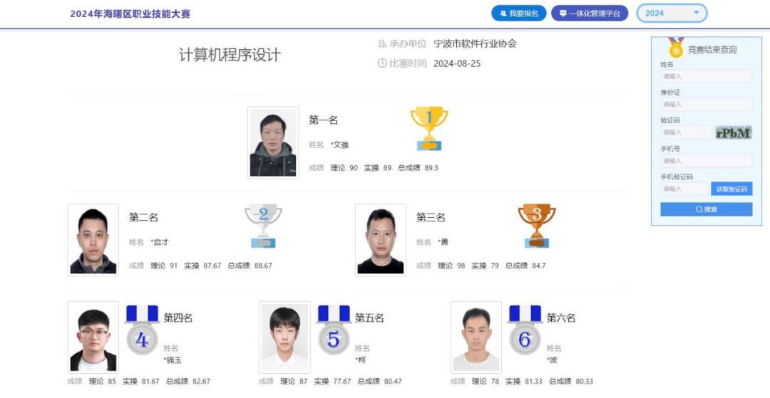 峰會宣布2024年寧波市計算機程序設計員技能大賽各區(qū)冠軍名單。我院智慧水利研究院劉文強榮獲海曙區(qū)冠軍。此前,智慧水利研究院選派24位員工參加2024年寧波市“技能之星”競賽海曙區(qū)選拔賽“計算機程序設計”競賽項目,并取得了包攬前六名的好成績。
