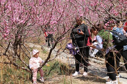 一抹抹溫暖明媚甚至跳躍著的桃紅,醉了眼簾,醉了心田。此情此景,掏出手機(jī),隨手按下快門,就是一幅絕美的春日桃花圖,想不流連忘返都難。一彎春水,一場(chǎng)花事,引來(lái)眾多市民、游客前來(lái)觀賞打卡,大家在桃花樹下擺著各種造型,或拍照,或拍短視頻,還有的在這醉人的花海里唱起了歌,跳起了舞,縱享春日大美時(shí)光。