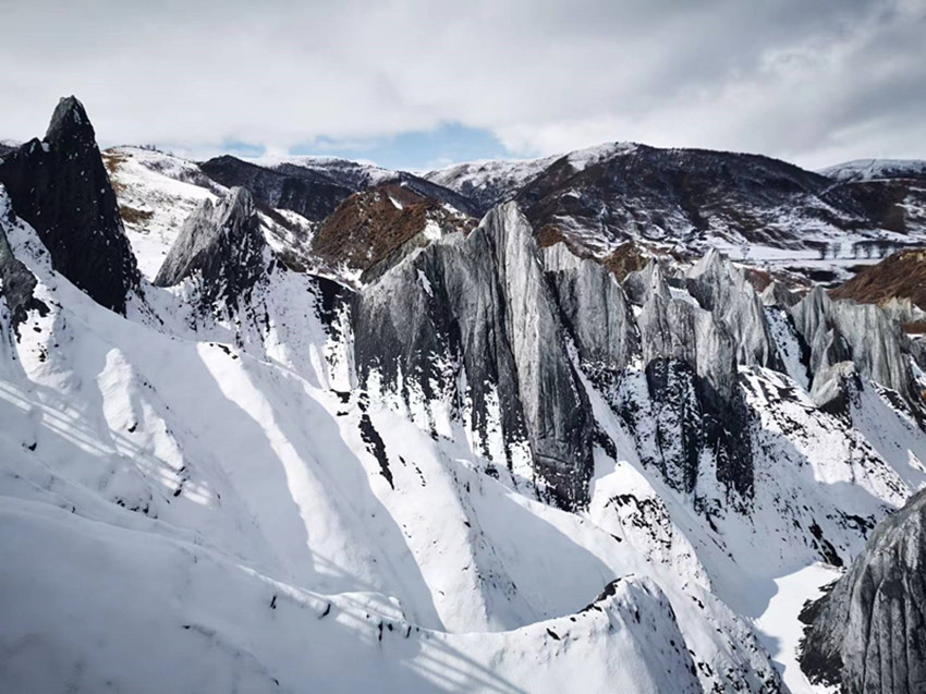 其實,這種巖石不僅出現(xiàn)在道孚縣,沿鮮水河斷裂帶,曾形成過長達上百公里的糜棱巖帶,但有幸成為石林的,卻唯有墨石公園。