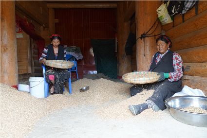 在甘孜縣仁果鄉(xiāng)的仁果下村,當(dāng)大家走進(jìn)村民恩珠澤仁家開滿了各色鮮花的院落時(shí),都不約而同的發(fā)出了贊嘆之聲,這是恩珠澤仁在當(dāng)?shù)厍皝碓氐牡谝粫浀闹С窒?,辦起的一家正準(zhǔn)備開張接待游客的民居接待點(diǎn),他告訴我們說,他真心的相信,甘孜的格薩爾機(jī)場通航后,這里就一定是他奔向小康的起點(diǎn),從這里開始,他對未來充滿了信心。