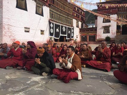 當(dāng)宣講組一行來到郭沙寺時(shí),寺廟僧人們早已迫不及待的等候在寺廟外。“聽說你們今天要來,我們?nèi)律舷露己芨吲d、很期待。”寺廟堪布甲它激動地說。