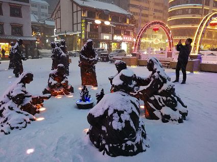 “風(fēng)雨送春歸,飛雪迎春到。已是懸崖百丈冰,猶有花枝俏?!?月4日傍晚,大片大片的雪花,從昏暗的天空中紛紛揚(yáng)揚(yáng)飄落下來(lái)。霎時(shí)間,山川、河流、城市,全都籠罩在白蒙蒙的大雪之中。黃昏的雪,下得深切切的,好象有千絲萬(wàn)縷的情緒似的,又像海水一般洶涌,能夠淹沒一切,還有一絲揭開藏頭露尾般的裸露感。雪花形態(tài)萬(wàn)千、晶瑩透亮,好象出征的戰(zhàn)士,披著銀色的盔甲,又像是一片片白色的戰(zhàn)帆在遠(yuǎn)航…… 落光了葉子的柳樹上,掛滿了毛茸茸、亮晶晶的銀條兒;冬夏常青的松樹和柏樹,堆滿了蓬松松、沉甸甸的雪球。那一片雪花在空中舞動(dòng)著各種姿勢(shì),或飛翔,或盤旋,或直直地快速墜落,鋪落在地上?!昂鋈缫灰勾猴L(fēng)來(lái),千樹萬(wàn)樹梨花開”——這是雪的燦爛;一場(chǎng)瑞雪,扮美了康定,年味籠罩的康定城,嫵媚妖嬈。無(wú)論是背水姑娘、有著年味兒的將軍橋,還是大紅燈籠高高掛的康定門,都在雪后別有一番景致。與美景合影、和朋友玩雪都是最佳選擇。在風(fēng)雪中,交警不畏嚴(yán)寒默默堅(jiān)守崗位 ,指揮交通疏堵保暢。他們的身影在皚皚風(fēng)雪路上站成一道道最美的風(fēng)景,溫暖了康定。從早上六點(diǎn)開始,康定的環(huán)衛(wèi)工就迎著刺骨的寒風(fēng),開始了除冰雪保通暢的行動(dòng),在積雪覆蓋的康定城,早起的商販樂(lè)呵呵地做起了買賣;民工迎著雪后的寒風(fēng)出門務(wù)工,他們是最可敬的人。