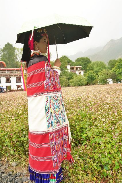 比賽開始不久,現(xiàn)場下起了小雨,但絲毫沒有影響熱烈氣氛。臺上的佳麗們,略施粉黛,穿著承載著嘉絨風(fēng)情文化的民族盛裝,自我介紹,優(yōu)雅展示。臺下,則是鄉(xiāng)民齊聚,熱情高漲。大家紛紛到場,為佳麗們加油助威。據(jù)介紹,丹巴出美女始于漢代的東女國時期。古時每年農(nóng)作物收獲的時節(jié),丹巴各村各寨都要舉行盛大的選美和祭祀活動。