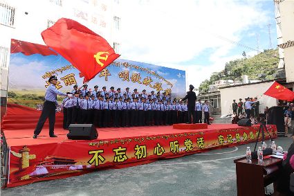 甘孜縣舉行“我和我的祖國”群眾歌詠活動,圖為幼兒園小朋友帶來的《中國范兒》。 縣委中心報道組 王永霞 攝