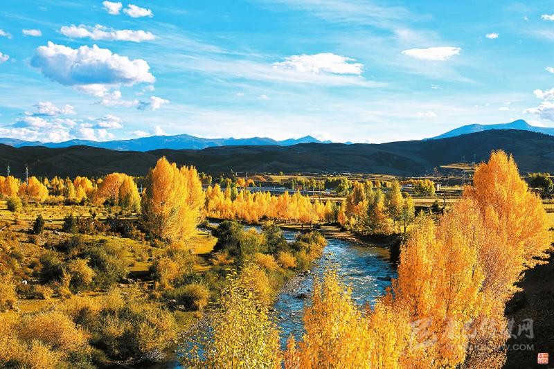 本網訊 10月7日,隨著深秋的到來,位于川西高原藏區(qū)的理塘縣甲洼鎮(zhèn)成片白楊樹由綠變黃,藍藍的天空、寧靜的藏寨,構成了一幅美麗鄉(xiāng)村畫卷。