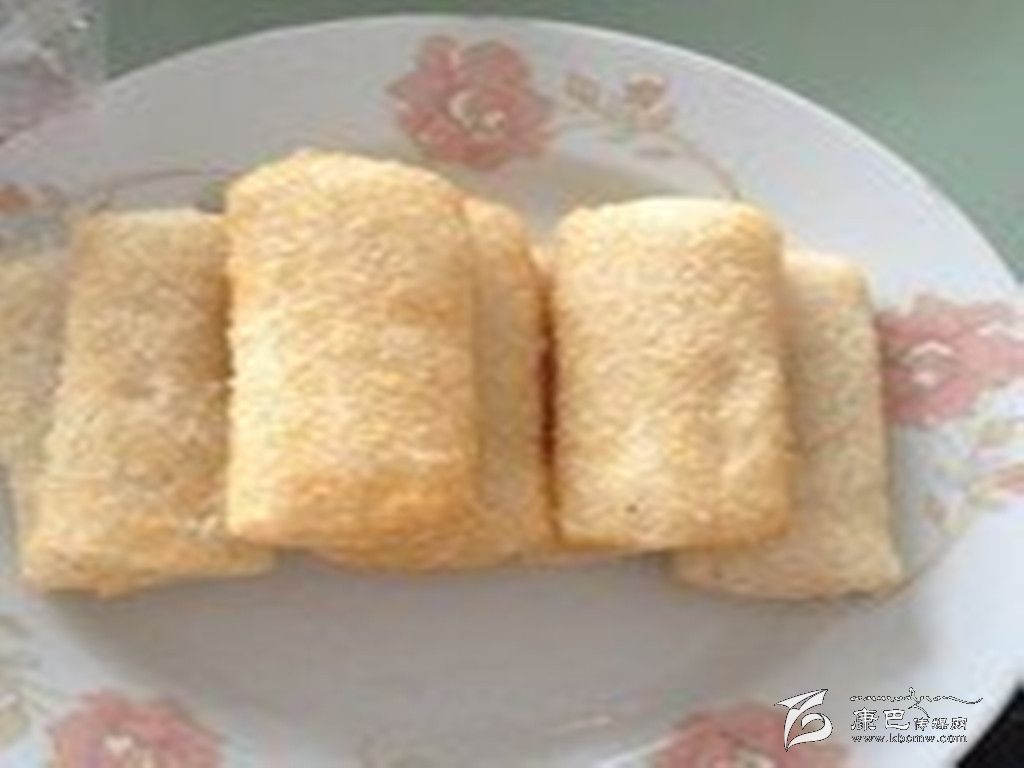炸白年糕 原料 糯米1000克,茶油100克。 做法 將糯米洗凈浸透后瀝去水上蒸籠蒸至熟爛,取出用木棒搗爛,壓展成塊,用刀切成約50克的小塊,然后將年糕放入燒沸的油鍋中,待炸成年糕翻白浮起時,即可撈出。