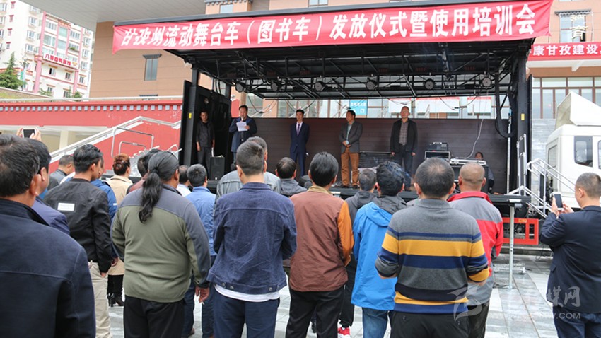 本網(wǎng)訊(記者 宋志勇 文/圖)6月22日,我州流動舞臺車(圖書車)發(fā)放儀式暨使用培訓(xùn)會在康定舉行,旨在為全州13個縣(市)及州歌舞團(tuán)、州圖書館統(tǒng)一配發(fā)流動舞臺車、圖書車,著力解決基層群眾看文藝演出難、看圖書難以及文藝表演團(tuán)體下鄉(xiāng)演出搭臺難、轉(zhuǎn)點(diǎn)難等實(shí)際困難,進(jìn)一步豐富基層農(nóng)牧民群眾文化生活。這是繼全國文化信息資源共享、鄉(xiāng)鎮(zhèn)綜合文化站建設(shè)實(shí)施的又一文化惠民工程。