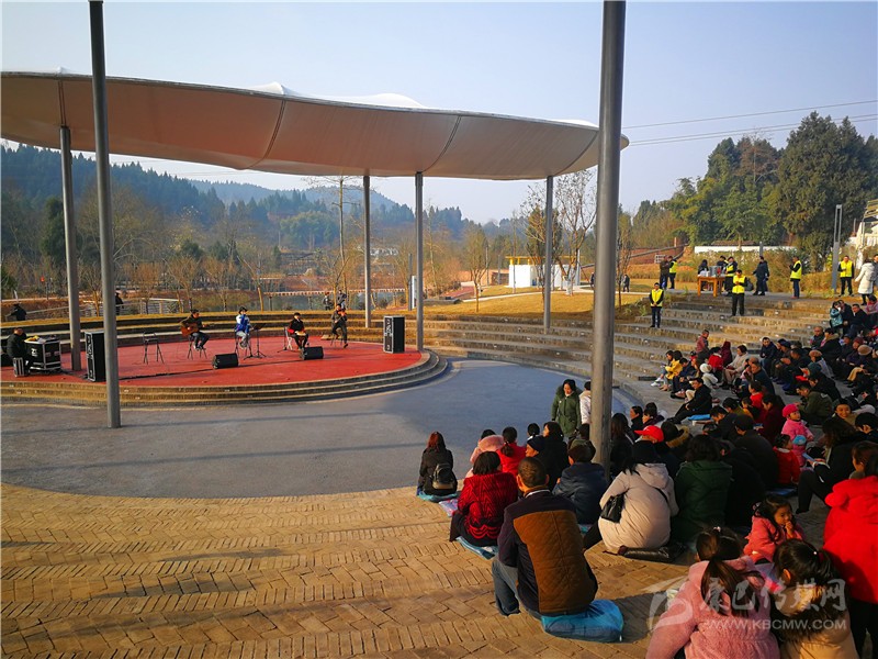 “遠(yuǎn)處的東山俯望著平靜的旌湖水,它流淌著,帶走了年輕的歲月……這就是我的家德陽,遠(yuǎn)方的人回來吧!”1月19日上午,在旌陽區(qū)東湖街道高槐村里傳來動(dòng)聽的民謠。遠(yuǎn)遠(yuǎn)看去,村民們圍坐在“田野秀場”正聽著樂隊(duì)歌唱,不時(shí)還跟著音樂打著拍子。