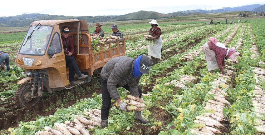 一根根白蘿卜,從理塘縣的沙礫地里,被農(nóng)牧民拔出來,被迅速清洗、包裝,及時裝上排隊等候的冷鏈車。過雅江,翻折多山、二郎山,在雪域高原行駛四百公里后,抵達川西平原,再上成渝環(huán)線高速,后經(jīng)廈蓉高速,抵達珠海、深圳,進入香港、澳門市場。