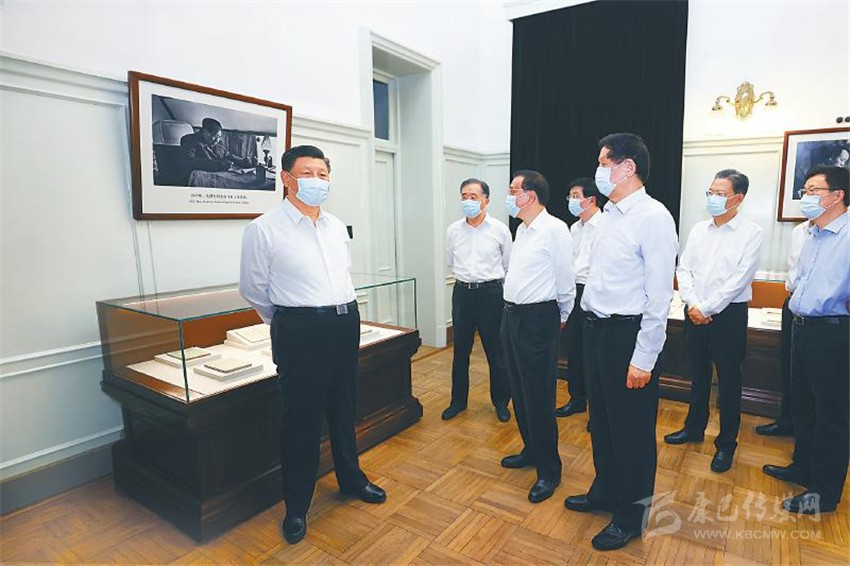 毛澤東同志在這里籌劃了新中國建立和建設的一系列大政方略。習近平帶領中央政治局同志來到這里參觀瞻仰,察看頤年堂大廳現(xiàn)場展陳,觀看毛澤東同志在豐澤園工作生活的影像短片,回顧毛澤東同志在這里主持召開的重要會議、作出的重大決策、會見的重要外賓,參觀毛澤東同志辦公區(qū)、會議室和藏書室,仔細察看毛澤東同志批改過的重要文件、閱讀過的書籍、穿過的衣物、使用過的日常用品和書信、手稿、照片等,追憶毛澤東同志的卓越功勛和崇高風范。習近平強調(diào),北大紅樓和豐澤園在黨的歷史上都具有標志性意義,生動詮釋了中國共產(chǎn)黨是怎么來的、中華人民共和國是怎么來的,給我們上了一堂鮮活而又生動的黨史課。