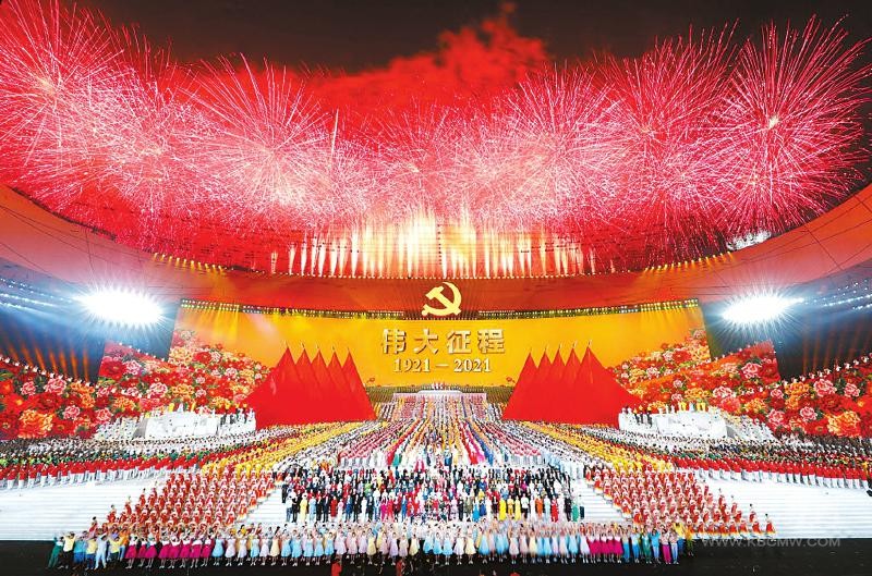 6月28日晚,北京,國(guó)家體育場(chǎng)燈光璀璨、人聲鼎沸。習(xí)近平等黨和國(guó)家領(lǐng)導(dǎo)人同約2萬(wàn)名觀眾一起觀看文藝演出《偉大征程》,共同慶祝中國(guó)共產(chǎn)黨成立100周年。