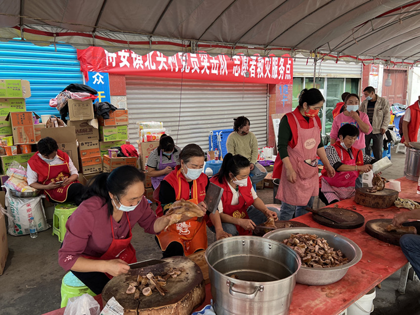 在得妥鎮(zhèn)北頭村的路旁,來自瀘定縣冷磧鎮(zhèn)桐子林村的李星芳和其他志愿者一起忙著切菜煮飯。她告訴記者,地震發(fā)生后,我主動報名加入志愿者團隊?!拔覀冞@個點上除了政府發(fā)放的物資,還有很多附近村民和好心人送來的菜肉和水果,大家都在用自己的行動出一份力?!闭诿χ胁说闹驹刚吆樾l(wèi)群說。就在記者采訪時,在北頭村開飯館的易姝宏一家送來了鹵菜、排骨和新鮮蔬菜,記賬員茍有成忙著清點數(shù)量并記錄在冊?!暗卣鸷螅謰尠涯赀~的奶奶送到瀘定縣城孃孃家,我也向單位請了假,今天我們一起趕回來在這里幫忙”。