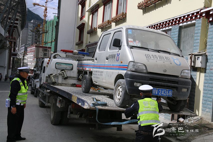 本網訊(記者 鄧安華 唐闖 文/圖)2日上午,記者在康定市北門體育場附近看見幾名交警正在拖移亂停亂放在街邊的一臺車輛。據悉,為保證藝術節(jié)期間康定主城區(qū)的交通順暢,康定市公安局交警大隊從當天起以康定主城區(qū)為中心,嚴厲查處影響交通秩序的各類突出交通違法行為。