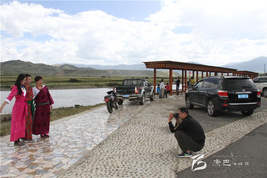 游客在理塘濯桑無(wú)量河觀景臺(tái)拍照留影。