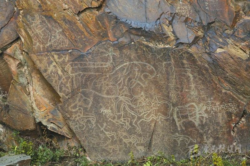 部分圖像因歲月的侵蝕,暫無法辨識。4處巖畫中,考古人員找出了40余頭動物,9個人物。其中的牦牛、大角羊、大角鹿為高原特有的動物形象。