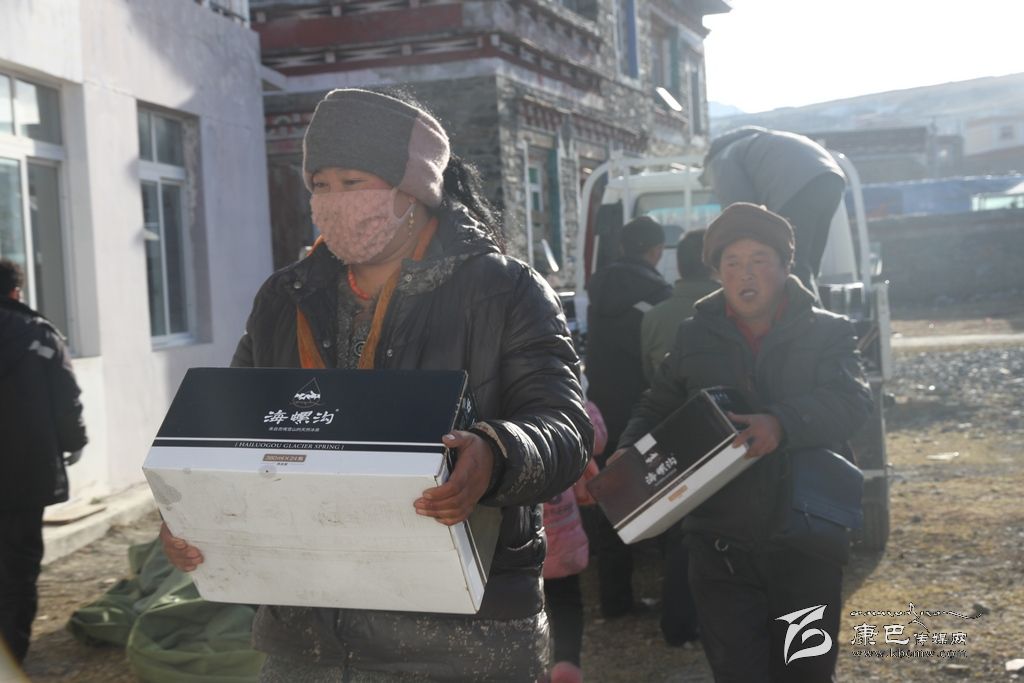 途中見到色曲卡、塔公、各日瑪3村民房均有不同程度損害,但尚未發(fā)現(xiàn)垮塌。在塔公鄉(xiāng)黨委政府的接應(yīng)和協(xié)助下,早上8點30分,50頂帳篷已全部發(fā)放到色曲卡村,50箱方便面、10箱牛奶、以及70件四川康定機(jī)場集團(tuán)旗下海螺溝冰川水業(yè)生產(chǎn)的礦泉水等物品也分別發(fā)放到了塔公、各日瑪兩村。