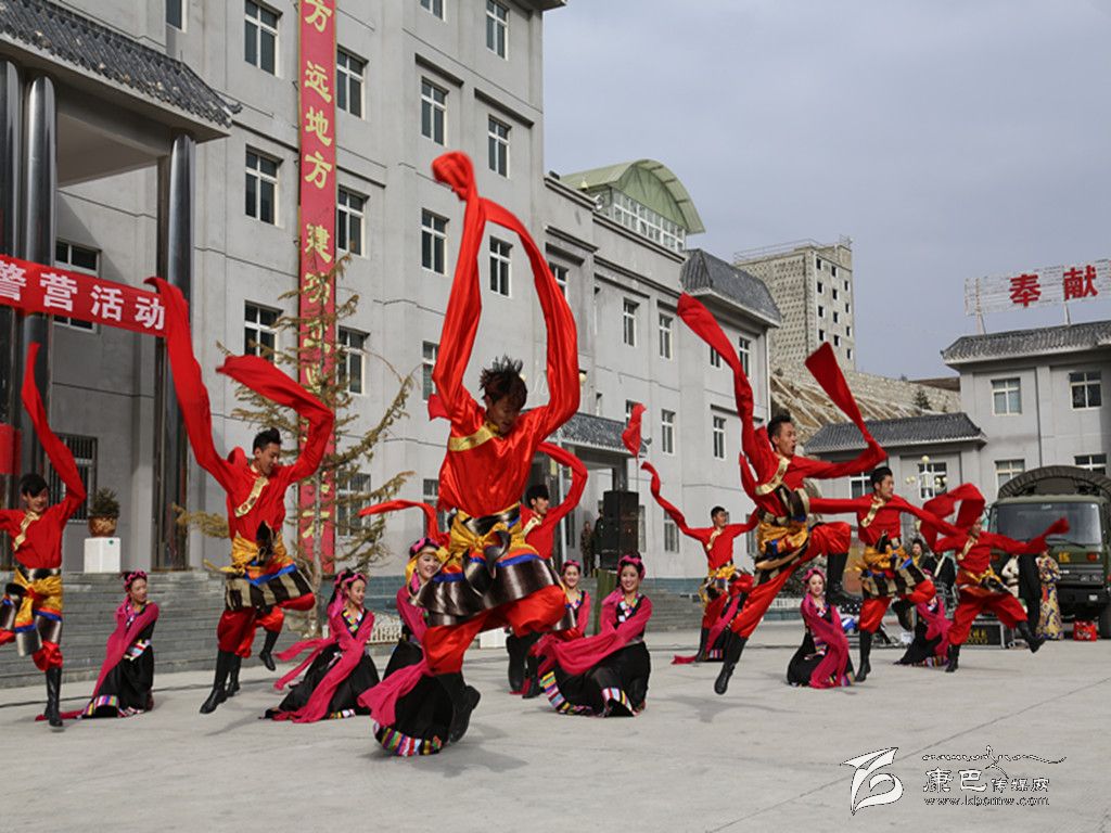 演出活動(dòng)在充滿藏族民族風(fēng)情的男女群舞《吉祥頌》中拉開帷幕,節(jié)目一開始,演員們激昂的熱情、優(yōu)美的舞姿給觀眾們帶來了美的享受,女子獨(dú)唱《納西情歌》《套馬桿》、男生獨(dú)唱《吉祥謠》、女子群舞《情灑康巴》、男子群舞《青春踢踏》、女子快板《甘孜兒女心向黨》等精彩節(jié)目相繼登場(chǎng),將演出活動(dòng)推向一個(gè)又一個(gè)高潮。特別是由支隊(duì)官兵表演的民族舞蹈《野人狂歡》、表演唱《當(dāng)兵就是帥》等精彩節(jié)目,贏得了觀眾們的陣陣喝彩。雖然天氣異常寒冷,天空還不時(shí)飄起了雪花,但演員們卻一直以飽滿的激情、嫻熟的技藝,為官兵們獻(xiàn)上了一個(gè)又一個(gè)精彩的節(jié)目。整場(chǎng)演出抒發(fā)了駐地群眾對(duì)人民子弟兵的深厚情誼和感激之情,表達(dá)了他們對(duì)人民子弟兵扎根高原、無私奉獻(xiàn)的欽佩之情,他們用自己的精彩表演,向人民子弟兵致以最親切的問候和最誠(chéng)摯的敬意。