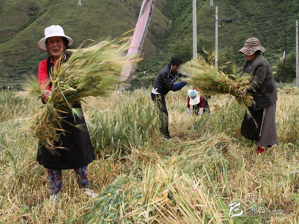 “今年青稞長(zhǎng)勢(shì)很好,這幾天我們?nèi)液痛謇锏泥l(xiāng)親都在為我家收割青稞。”爐霍縣新都鎮(zhèn)柒灣村村民德清告訴記者。8月7日,記者在爐霍縣新都鎮(zhèn)鮮水河沿岸看到,大片的青稞已經(jīng)成熟,當(dāng)?shù)夭簧俎r(nóng)民已經(jīng)開鐮收割,收獲的喜悅洋溢在臉上。圖為新都鎮(zhèn)柒灣村村民德清一家在收割青稞。 (本網(wǎng)記者 袁飛 攝影報(bào)道)