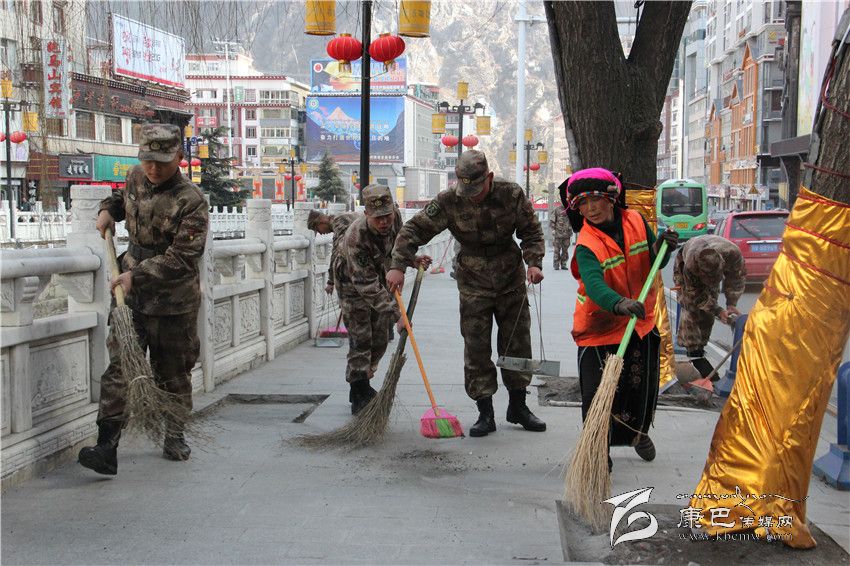 情歌廣場,官兵們鏟除冰雪,除去塵土垃圾,留下一片潔凈美好;福利院里,官兵們?yōu)槔先藵{洗衣物、打掃衛(wèi)生、理發(fā)洗頭,忙得不亦樂乎。幾位女兵還專門為老人們送去了自編自演的節(jié)目,這個“一家人”的溫馨聚會,讓老人們倍感高興、倍感溫暖。而此刻,遠(yuǎn)在道孚的分區(qū)部隊某營官兵的愛民助民活動也進(jìn)行的如火如荼。