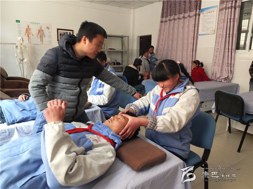 在一間實訓室里,記者看到康定盲協(xié)協(xié)會主席,楊氏盲人按摩館的楊老師正在為孩子們演示按摩和足浴技能,孩子們學得很投入,老師演示完一個動作后,他們就迫不及待地組成小組相互演練起來。據老師介紹,這個班有6名學生技有所成,可以獨擋一面,他們將在學校實訓基地開張時亮相,用雙手去實現他們的人生價值。