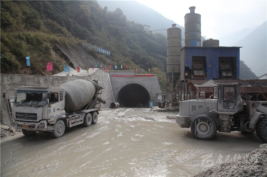 圖為正在加緊后續(xù)施工的磨崗嶺隧道。該隧道通車后,將避開大板巖滑坡區(qū),進(jìn)入海螺溝景區(qū)的道路將更加順暢。本網(wǎng)記者 周華 攝