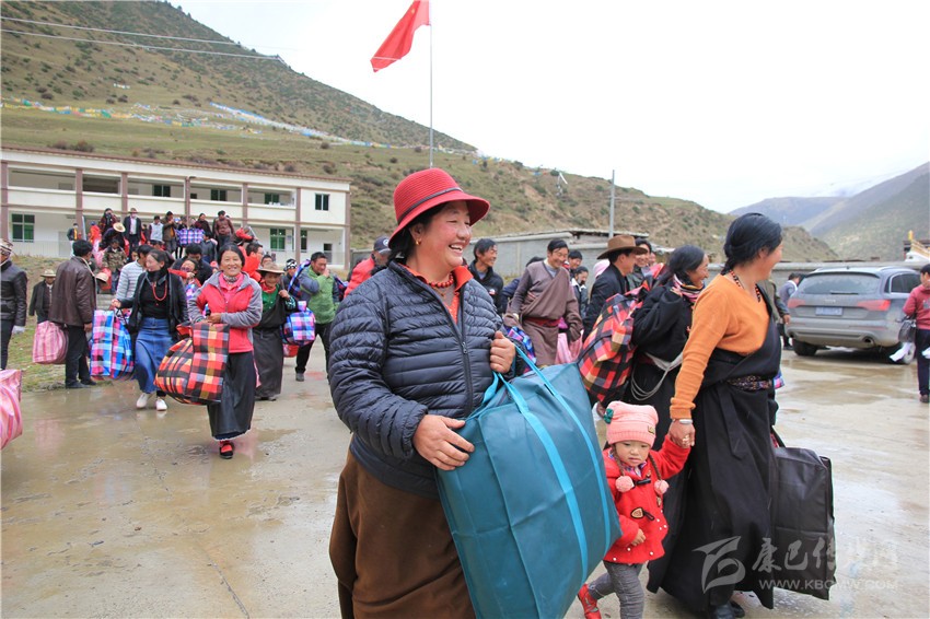 德格縣群眾領(lǐng)到愛心物資。