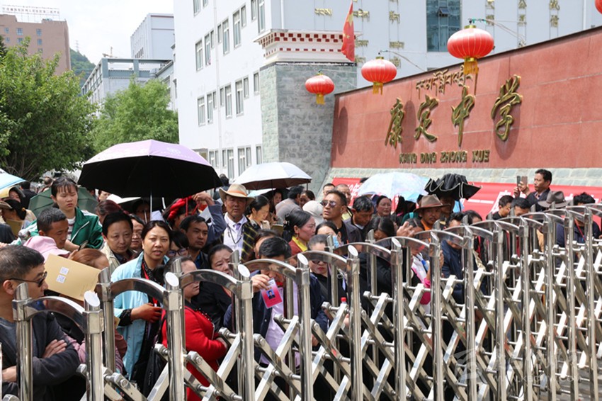 開考前,1600多名考生在康定中學(xué)考點(diǎn)候考。