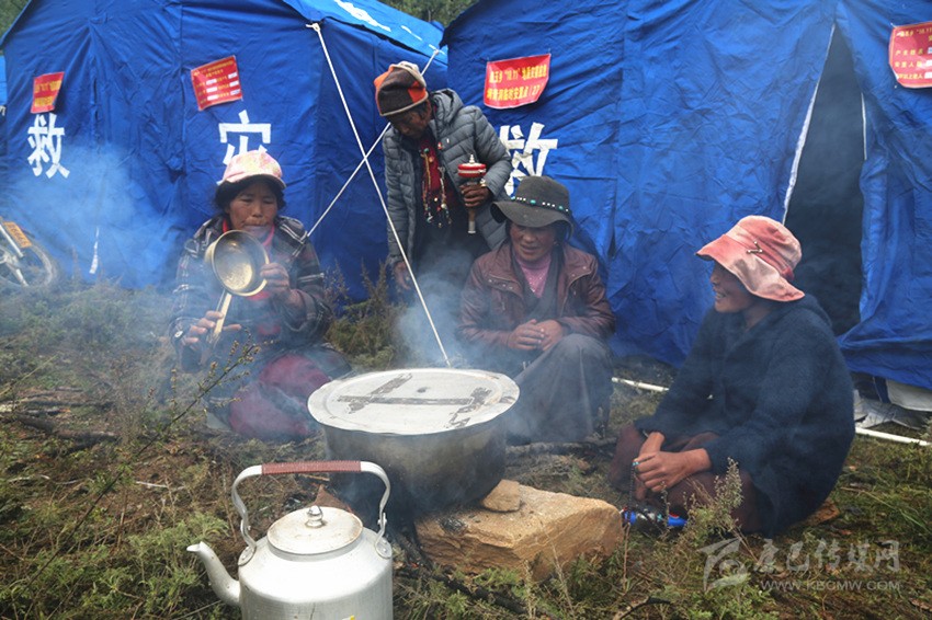曲珍、曲西和幾個伙伴正在燒著開水。“這是到安置點(diǎn)后我第一次生火。前兩天吃干糧喝礦泉水,讓喝慣了酥油茶的我們很不適應(yīng)?!鼻湔f。