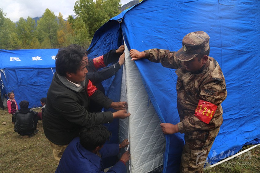 走進(jìn)炯青洞臨時安置點(diǎn)27號帳篷,見到村民康珠正在整理被蓋。她介紹說,縣里給每戶村民發(fā)了5床棉被,發(fā)放了礦泉水、方便面、餅干,發(fā)放了常用藥,還拉上了電,每天晚上能用上4個小時的電,我們睡了,還有黨員干部輪流值班。“黨和政府為我們想得很周到,讓我們吃得飽穿得暖還睡得安全?!?/p>