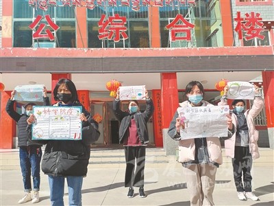 孩子們展示制作的防疫手抄報。