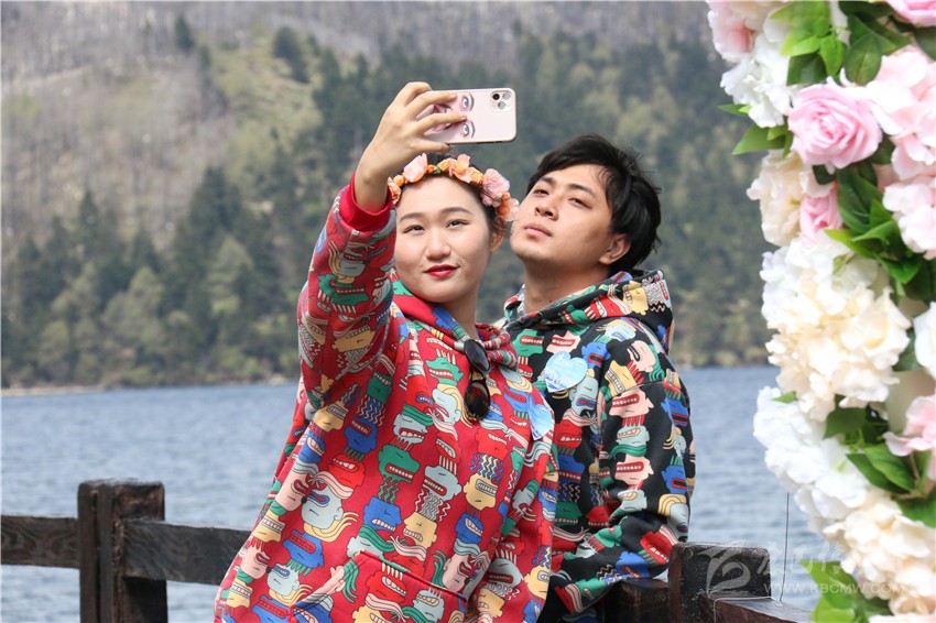 “今年已走過20年婚姻歲月?!眮碜猿啥嫉母姘渍哐詵|和王艷是通過網(wǎng)絡(luò)招募的情侶。他們說:“今天很榮幸來參加這個活動,木格措很美,在今天這個特殊時刻,來到這里打卡,將成為我們婚姻生活里美好的回憶?!?/p>