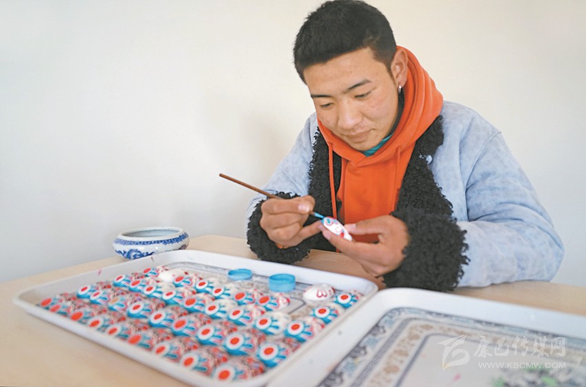 本著自主自愿的原則,教學(xué)班結(jié)束后,65名藏族青年主動加入扶貧彩繪實訓(xùn)班,成為項目的第一批學(xué)員。“實訓(xùn)期間不需要交任何費用,還包吃住。我對畫京劇臉譜很有興趣,我們第一個月學(xué)習(xí)繪畫基本功,第二個月開始,根據(jù)成品質(zhì)量,就可以計件得酬勞,學(xué)習(xí)期間我每月能掙500多元?!壁雠f。