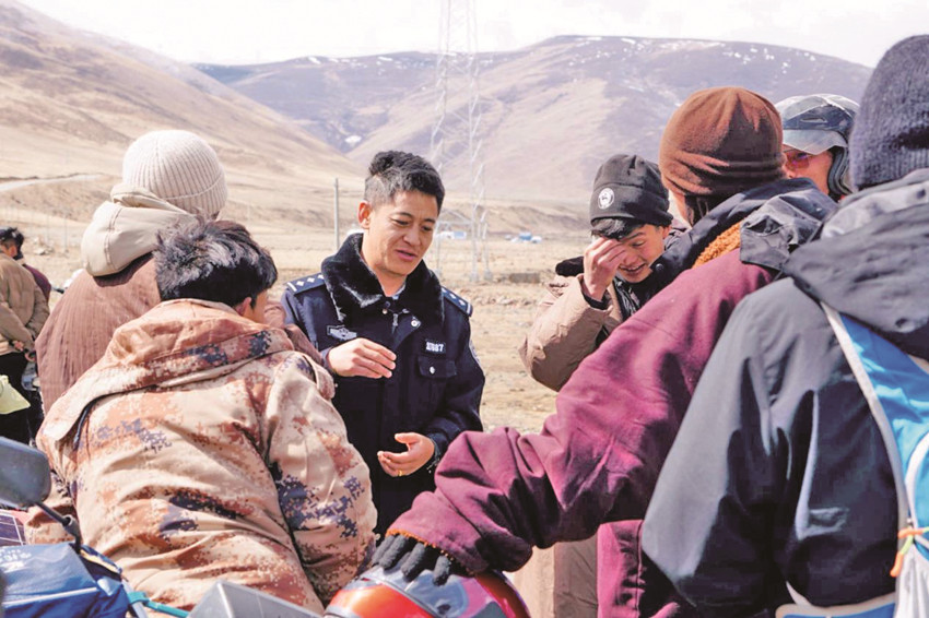 看到派出所民輔警如約而至,這些平日里常到派出所辦事的群眾顯得格外高興,“你又來(lái)啦!這次和我們住多久?去年你多多照顧我們了。”“每年上蟲(chóng)草山都有你,去年挖蟲(chóng)草,我?guī)У年笈?,有一頭跑到別人草場(chǎng)去了,是你這個(gè)所長(zhǎng)幫忙化解糾紛,還一個(gè)人翻山越嶺把牛給我送回來(lái)了,太辛苦你了,卡卓、卡卓(藏語(yǔ),謝謝的意思)……”陽(yáng)光下,相互寒暄,深情回味的場(chǎng)景顯得格外溫馨和美,警民臉上的笑容質(zhì)樸、純真,還有甜甜的幸福。