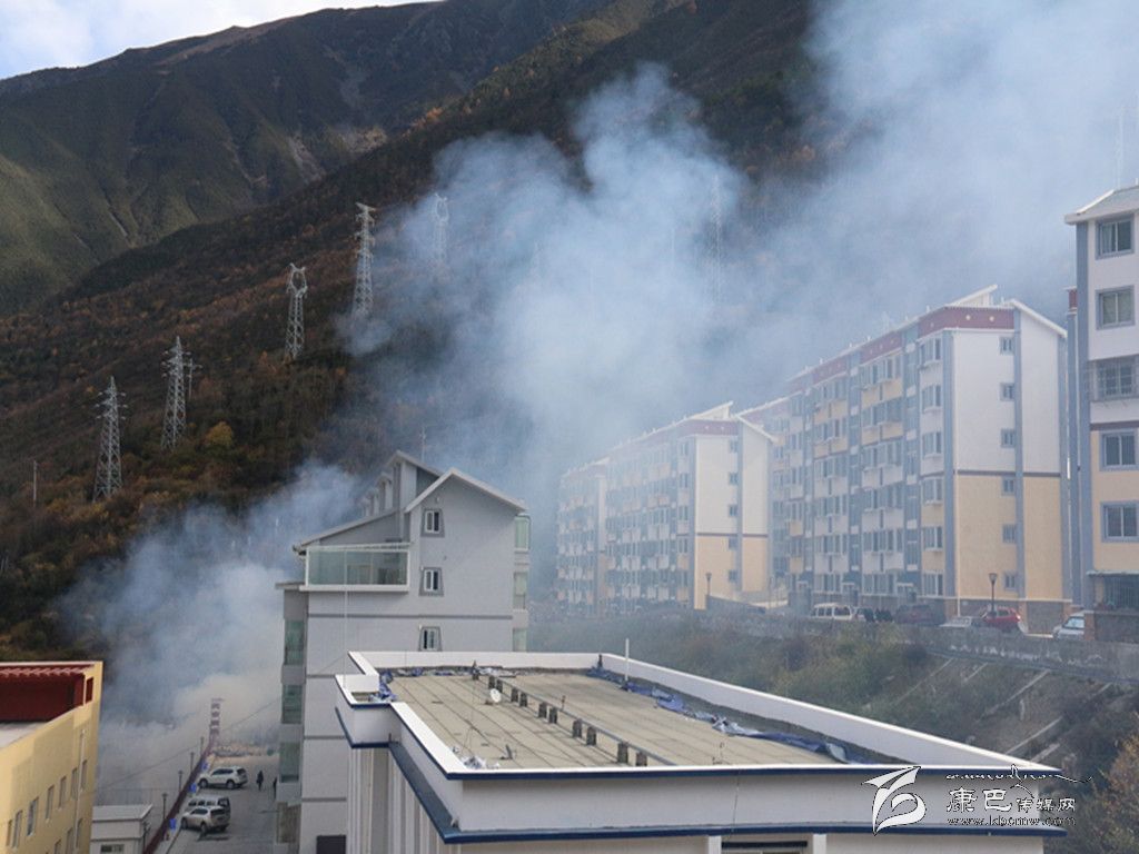 在康定新區(qū)的這片空地上記者看到,本應(yīng)運(yùn)走的垃圾,卻被就地焚燒,滾滾濃煙彌漫著整個(gè)天空,能見度不足十米??諝庵袕浡瘫堑臍馕叮瑔艿眠^往行人捂住口鼻疾行而過。