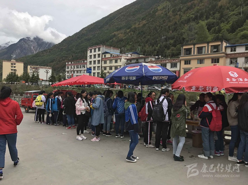 那么真實情況到底如何呢?7日,記者專門來到康定中學(xué)走訪調(diào)查。記者搭乘出租車前往學(xué)校,途中司機卻回應(yīng)“康中校門口那一段全是賣炸洋芋、炸雞腿的攤攤,車子根本開不過去,只能提前下車?!碑?dāng)記者步行過橋到達校門口路段時,雜亂無序而又異常喧鬧的場面立刻映入眼簾。約摸十來家燒烤油炸“流動攤點”上,商販們手中的烤具上下翻飛,幾十名身著“康定中學(xué)”校服的學(xué)生駐足其間,從校門出入的車輛不斷鳴笛避讓??久娼?、炸土豆、烤雞腿,濃濃的油煙、各種調(diào)料混合的氣味、滋滋的油炸聲……儼然一副“美食街”的火爆景象。